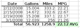 It was consistent it and a little better than the EPA\’s 21MPG combined estimate.