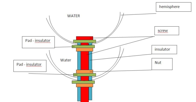 – the insulator (blue) should insolate the screw and hemisphere but water can flow between both elements